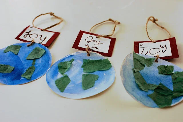 Use a paper plate or cardstock and cut out a circle for globe. Decorate as the world with tissue paper, watercolor, markers, etc. Maybe even draw baby Jesus in a manger in the middle.